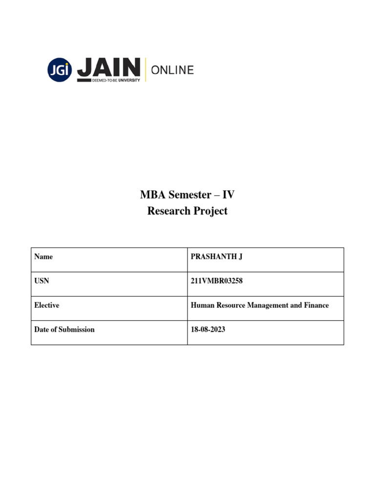 Research Project submitted to Jain Online (Deemed-to-be University)