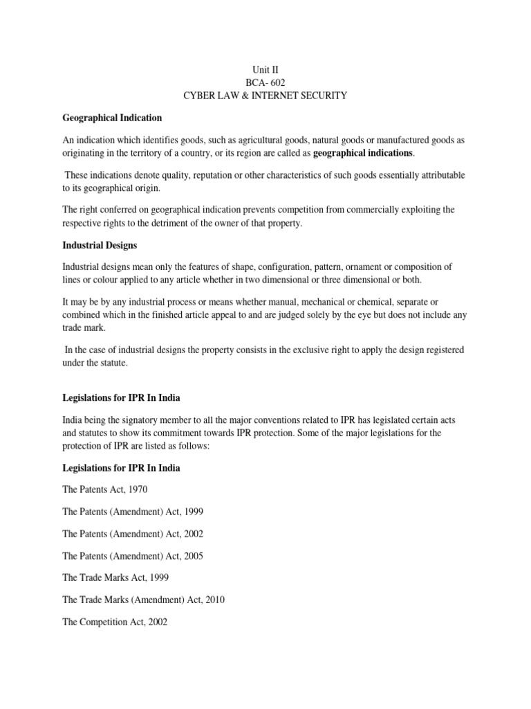 and statutes to show its commitment towards IPR protection. Some of the major legislations for the