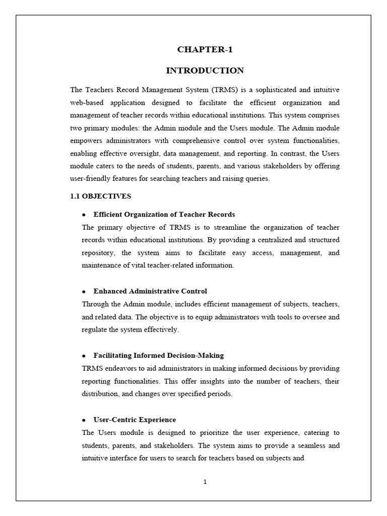 To streamline and organize teacher-related data efficiently.TRMS aims to provide