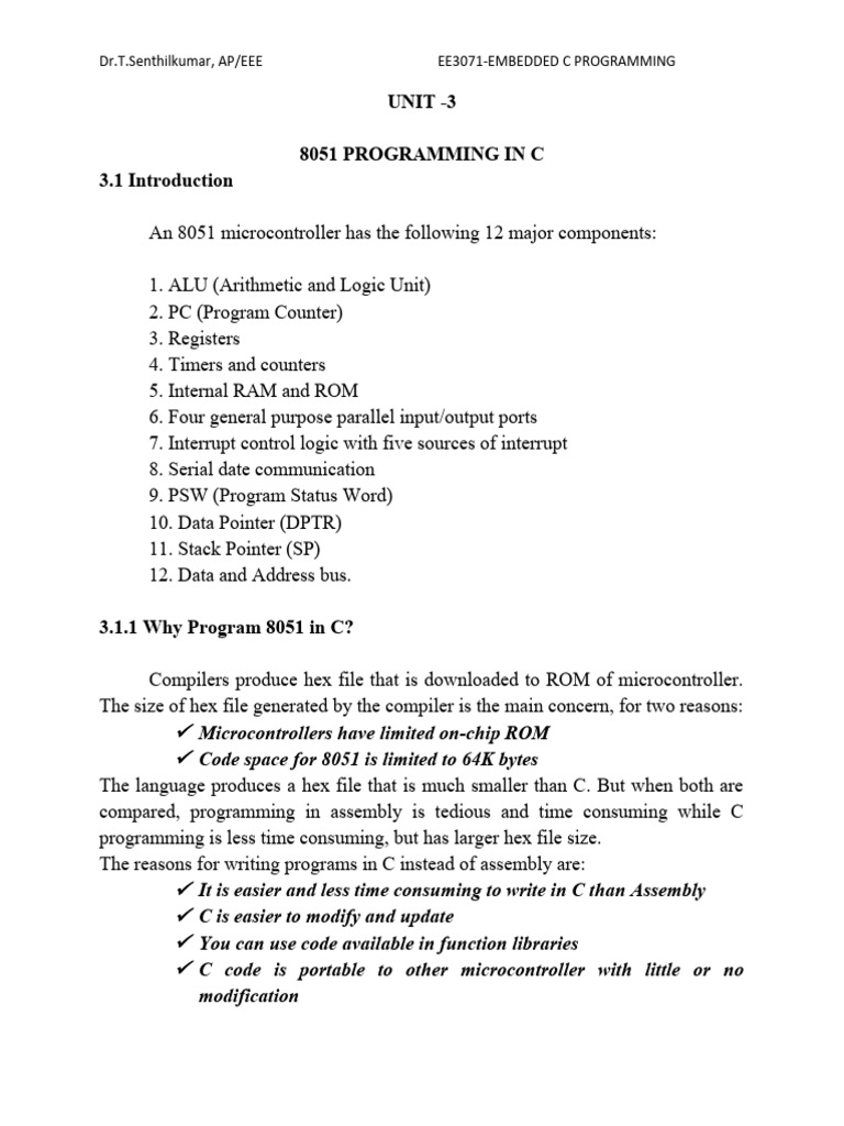 Senthilkumar, AP/EEE EE3071-EMBEDDED C PROGRAMMING