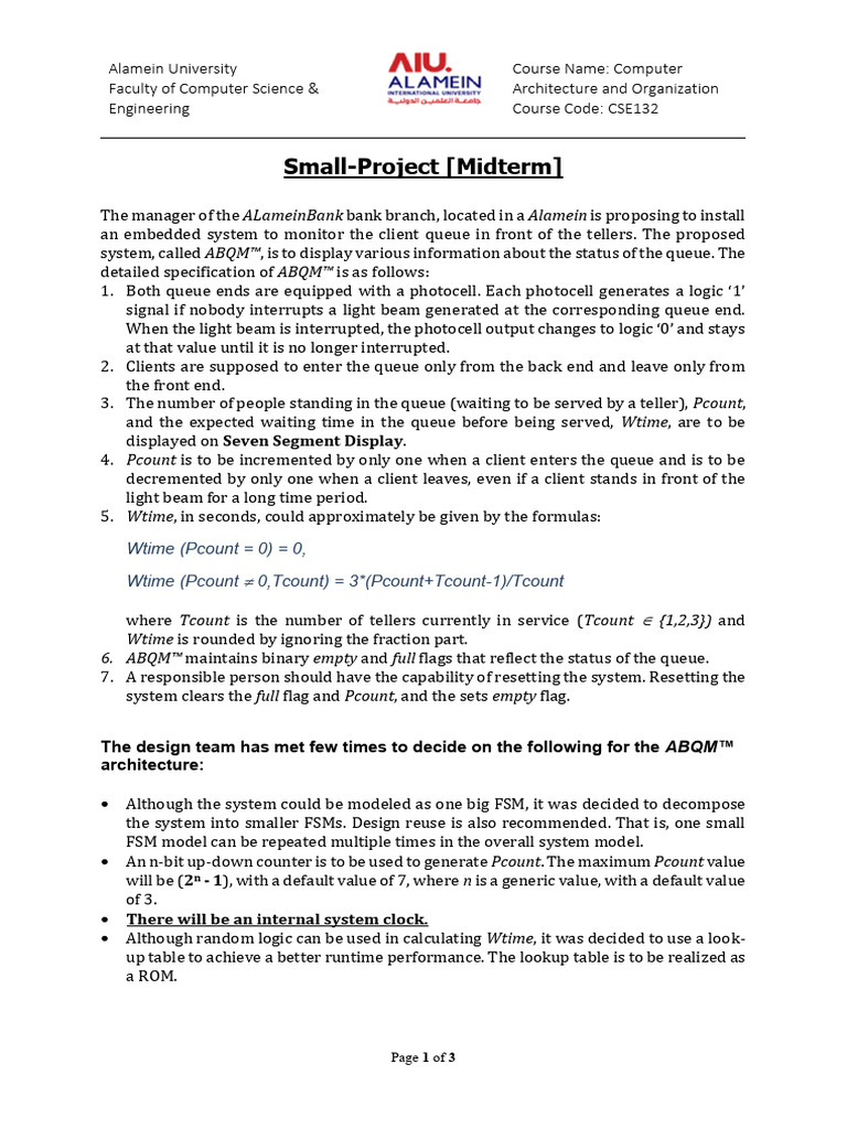 an embedded system to monitor the client queue in front of the tellers. The proposed
