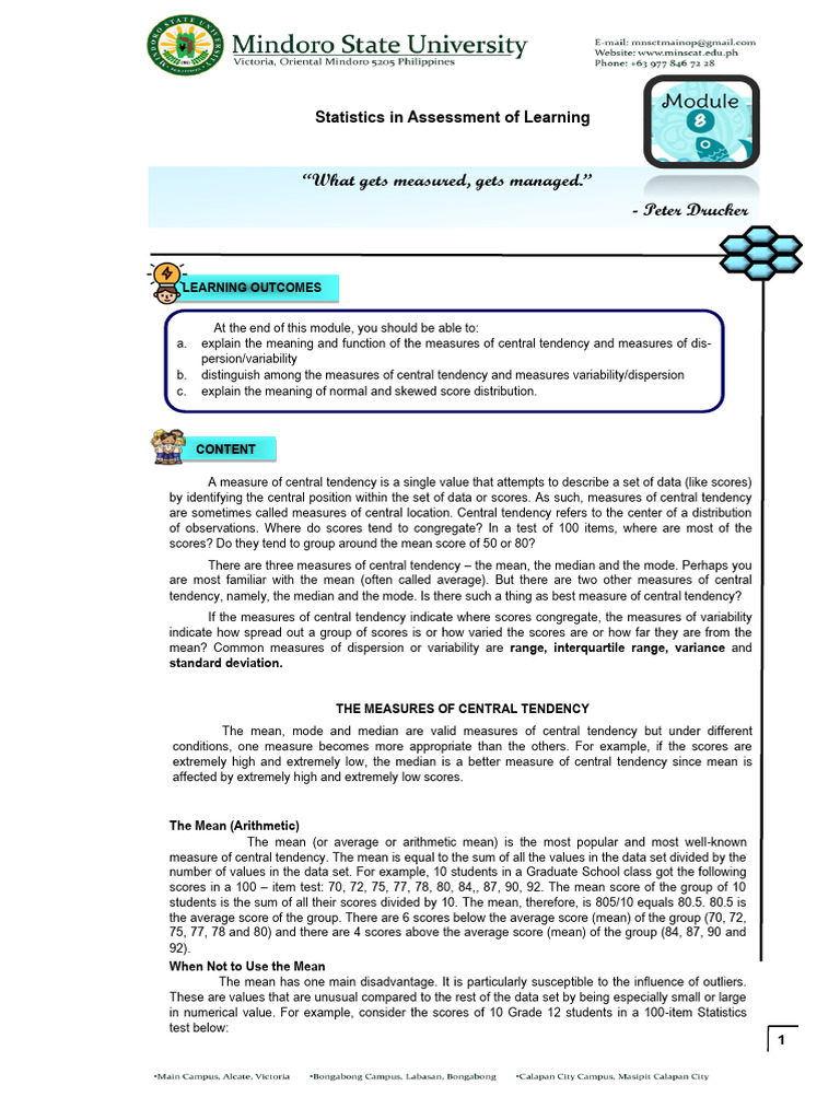 b. distinguish among the measures of central tendency and measures variability/dispersion