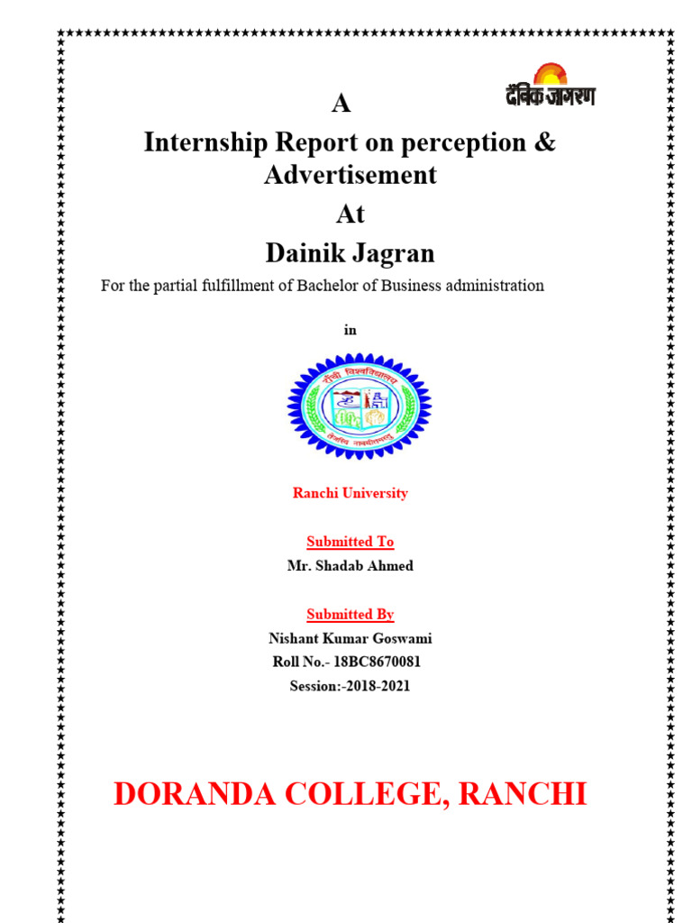 entitled “Perception & Advertisement at Dainik Jagran” submitted to