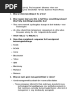 - Innovator's dilemma: to disrupt or be disrupted (whether to change or innovate the