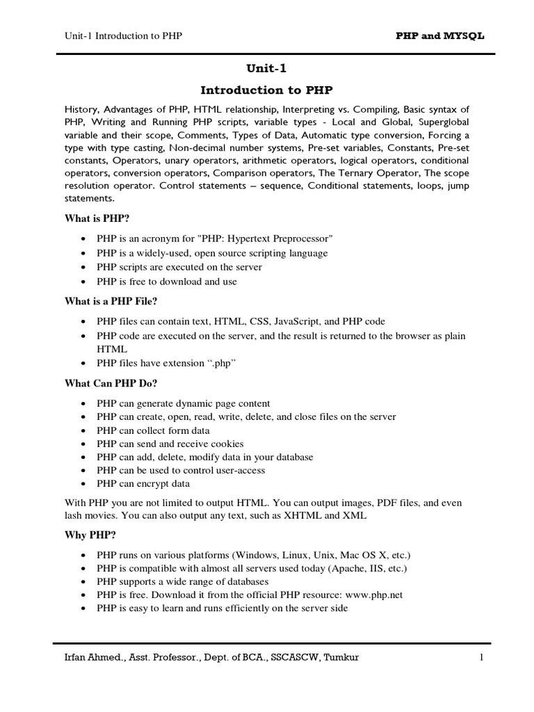 History, Advantages of PHP, HTML relationship, Interpreting vs. Compiling, Basic syntax of