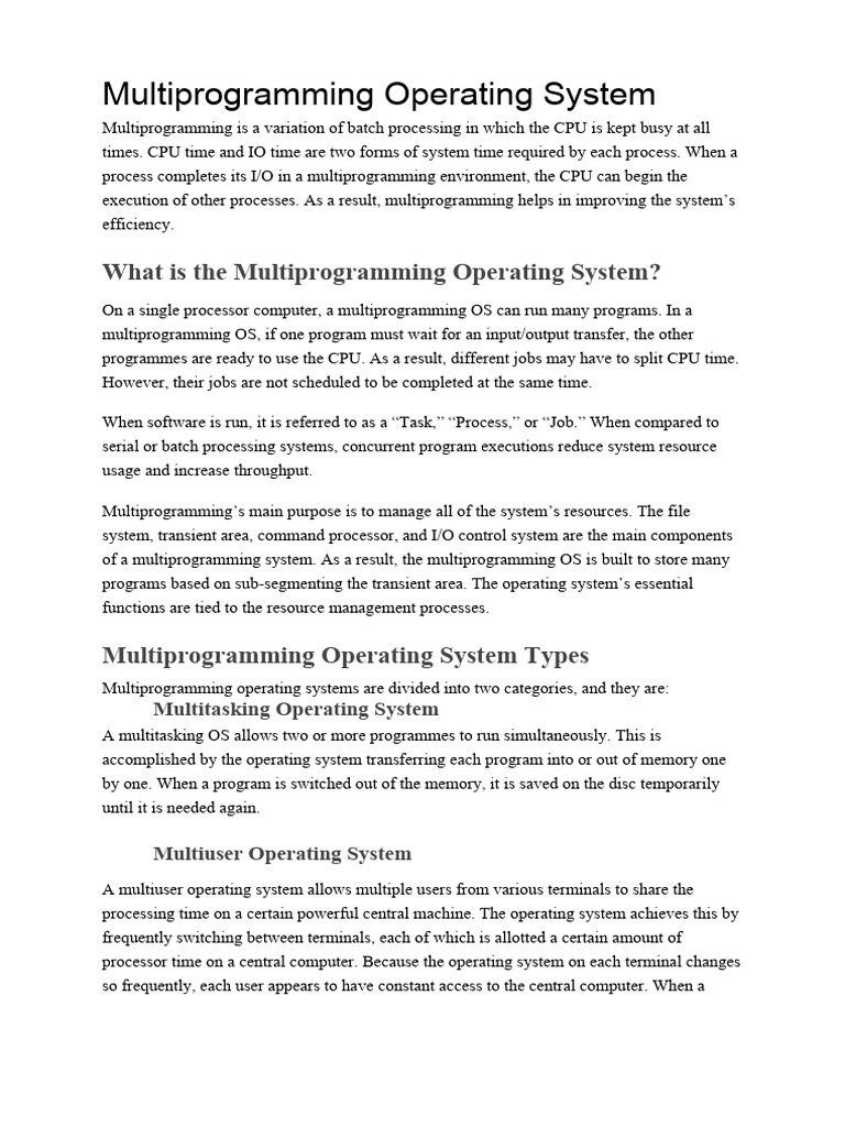 of a multiprogramming system. As a result, the multiprogramming OS is built to store many