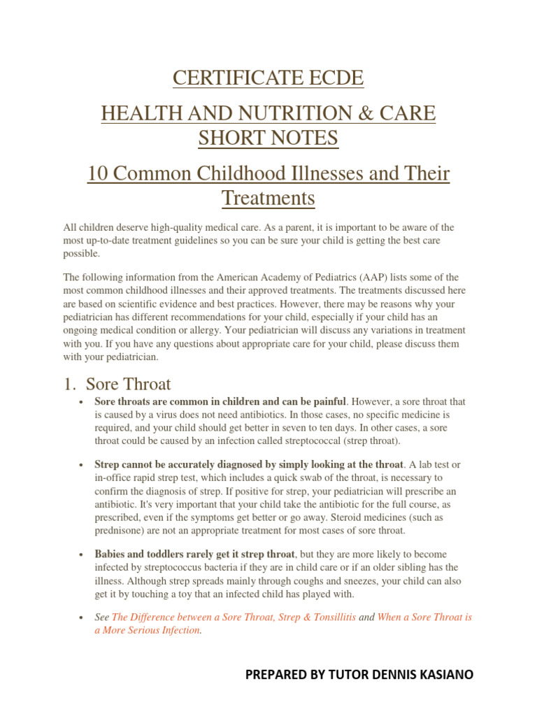 most common childhood illnesses and their approved treatments. The treatments discussed here