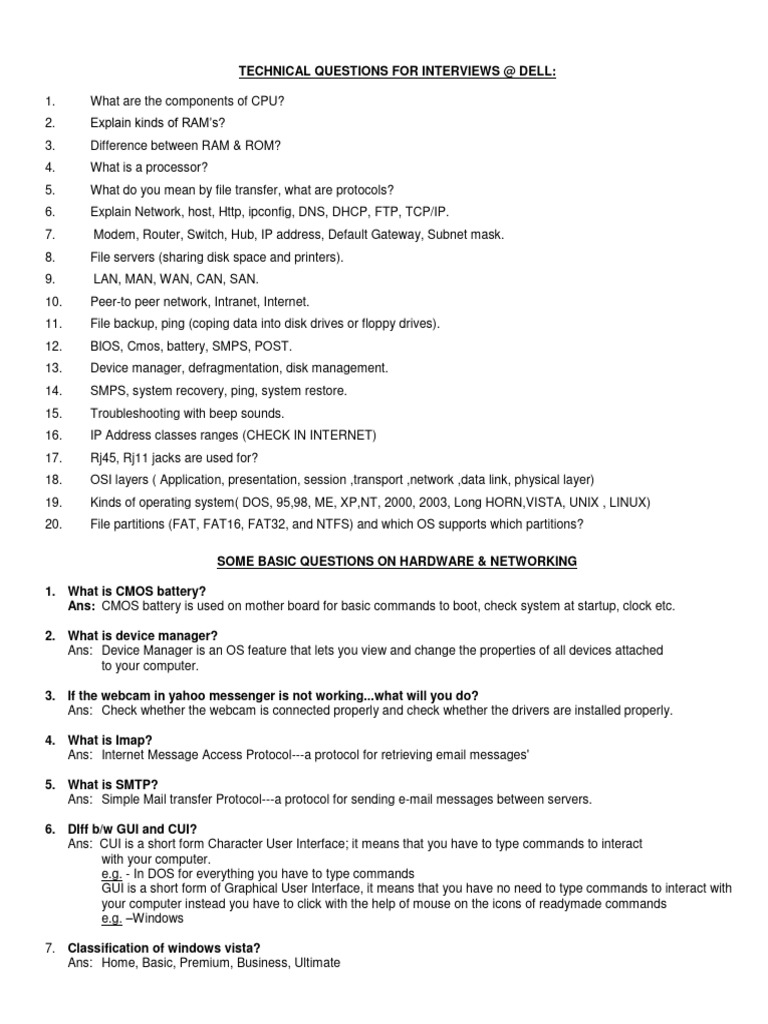 TECHNICAL QUESTIONS FOR INTERVIEWS @ DELL: