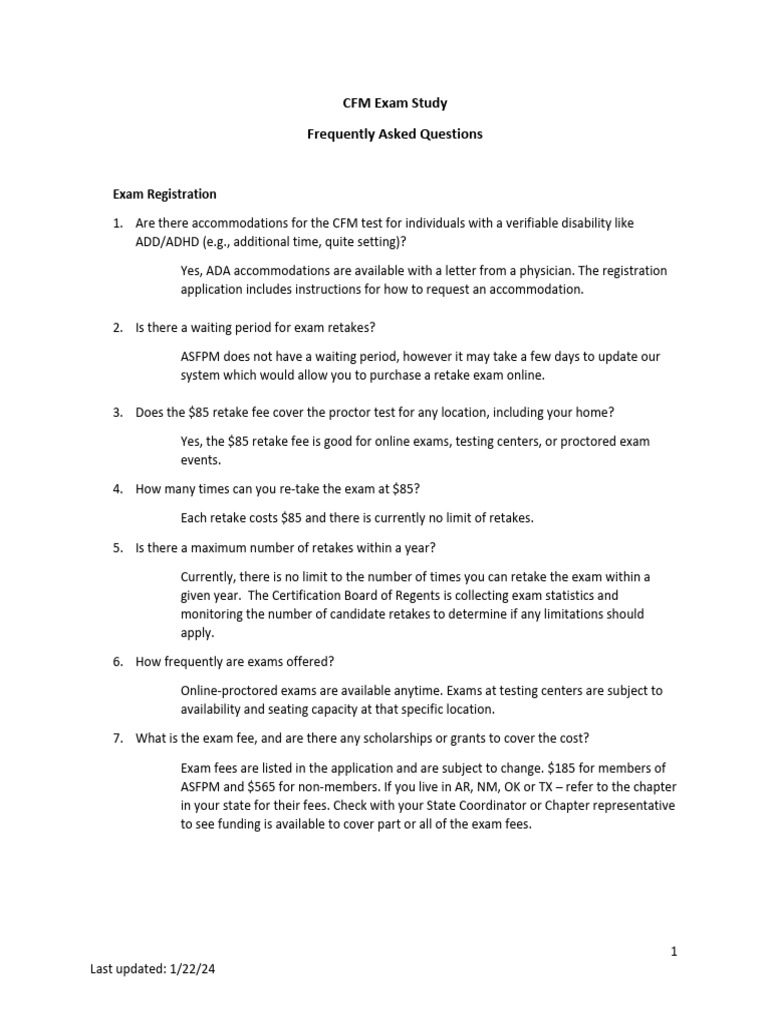 1. Are there accommodations for the CFM test for individuals with a verifiable disability like