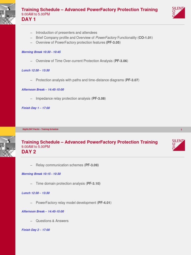Training Schedule – Advanced PowerFactory Protection Training