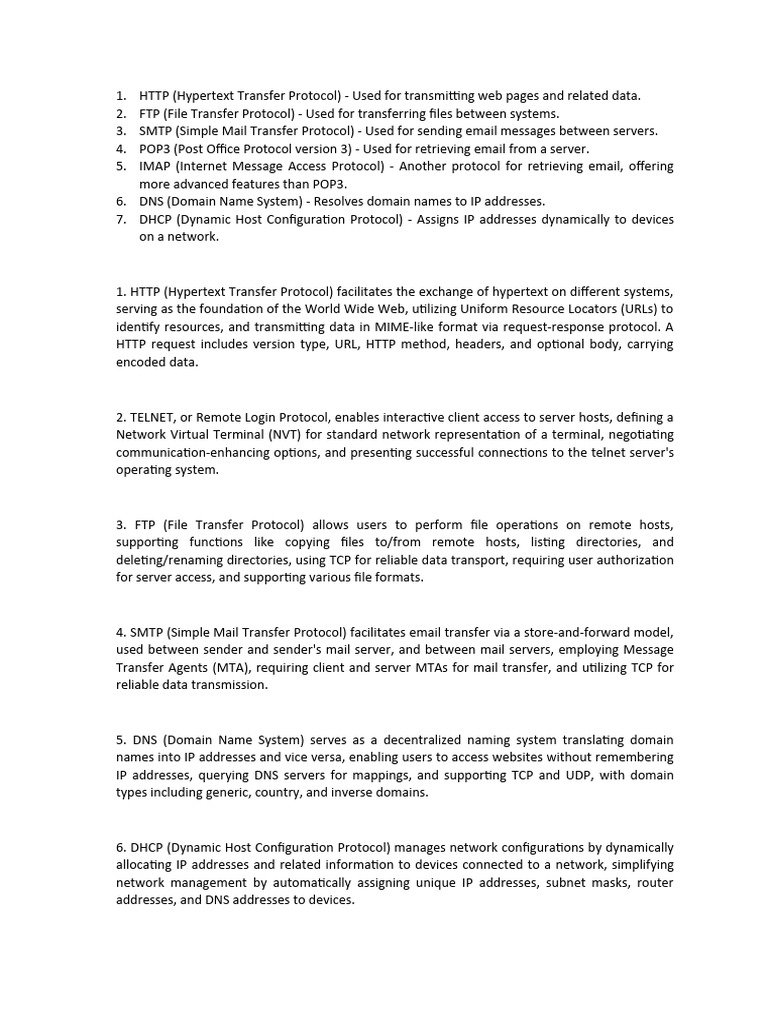 2. FTP (File Transfer Protocol) - Used for transferring files between systems.