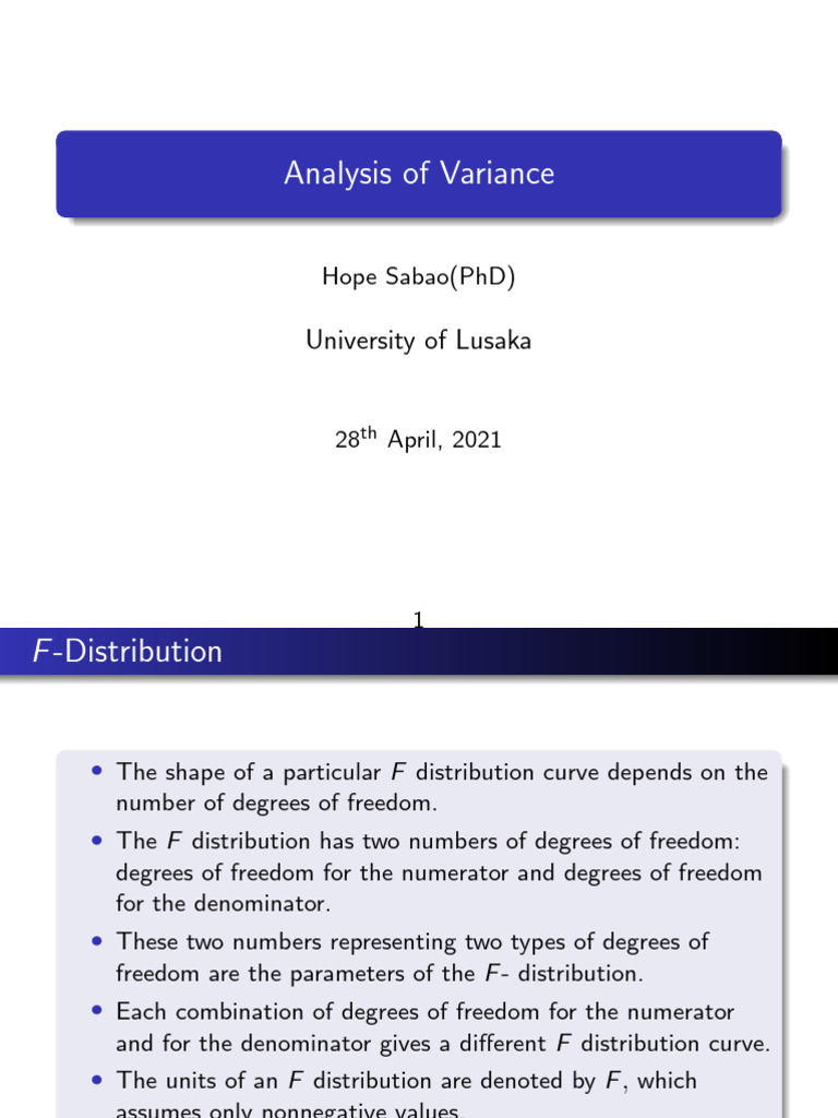 • Note that in a one-way ANOVA test, the null hypothesis is