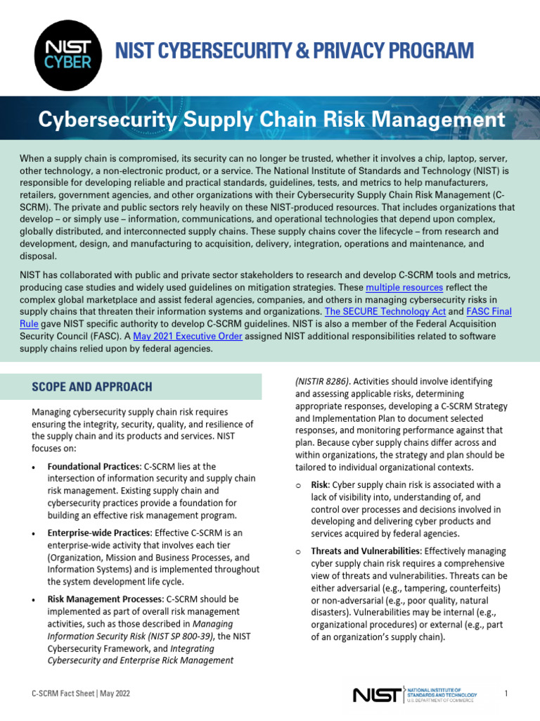 SCRM). The private and public sectors rely heavily on these NIST-produced resources. That includes organizations that