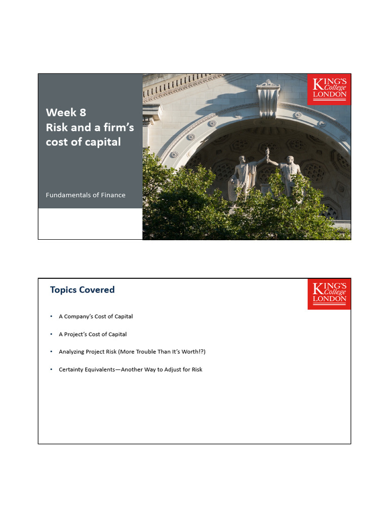 • Ultimately, it is project risk that counts. The cost of project capital depends on the use to which the