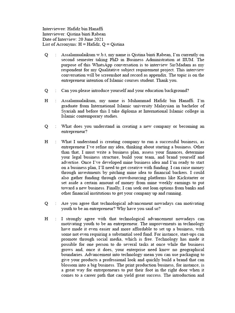 Q : Assalamualaikum w.b.t, my name is Qistina binti Rabean, I’m currently on