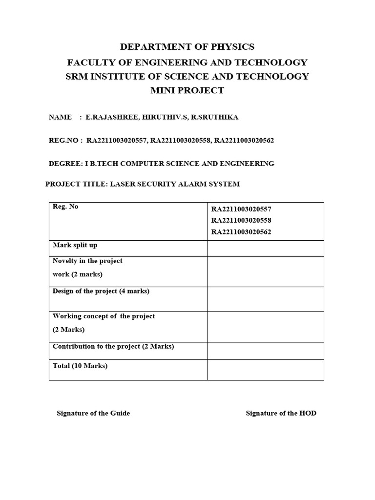 PROJECT TITLE: LASER SECURITY ALARM SYSTEM