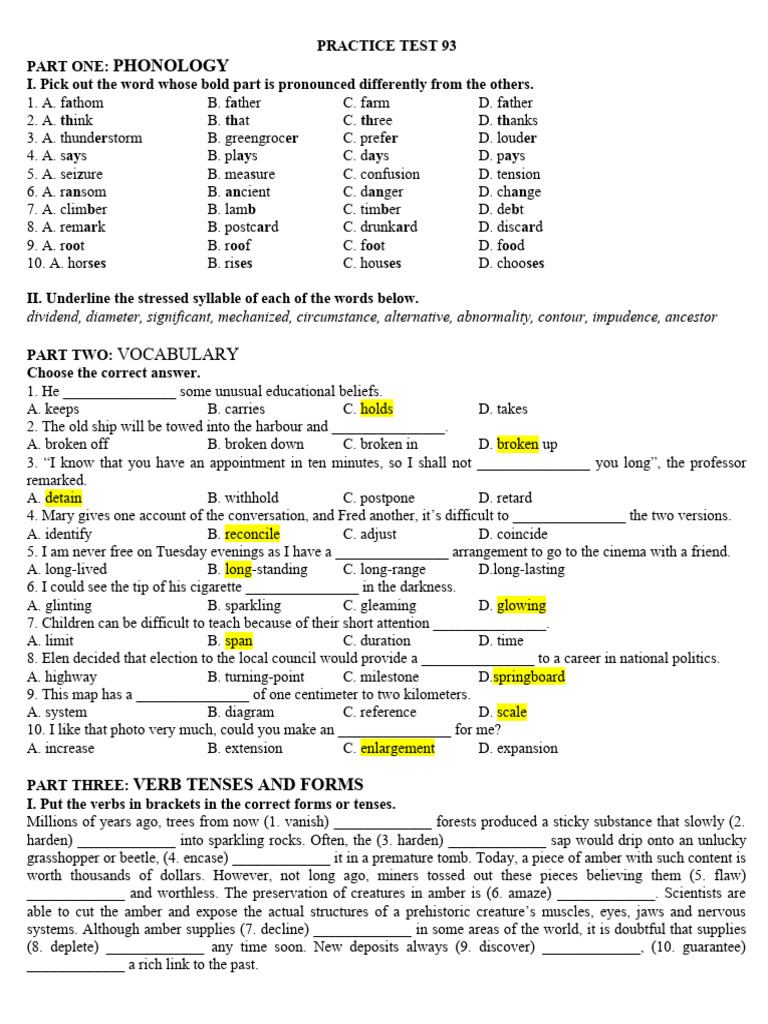 I. Rewrite each of the following sentences in such a way that it means almost the same as the one printed before