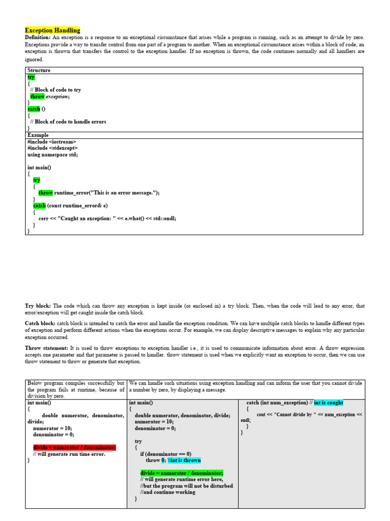such as if-else statements or switch cases. Here are some reasons why exception handling is important: