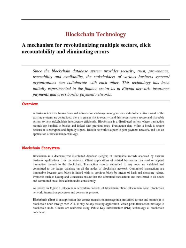 system to help stakeholders interoperate efficiently. Blockchain is a distributed system where transaction