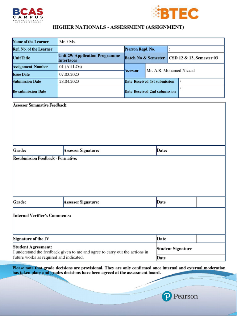 HIGHER NATIONALS - ASSESSMENT (ASSIGNMENT)