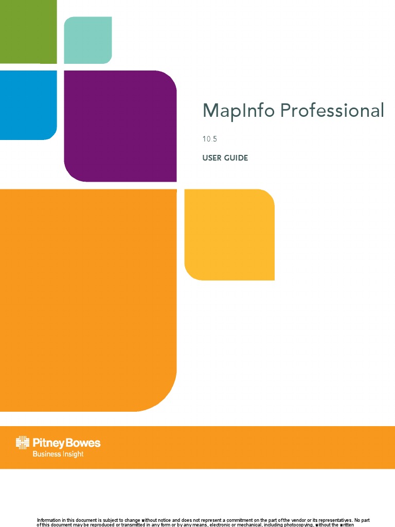 Welcome to the Pitney Bowes Software Inc. family of products. As the field of computer mapping continues to expand, Pitney Bowes Software Inc. leads the way with new products that are designed to fulfill users computer mapping needs from the most basic to the most specialized with MapMarker, our premier address matching product. MapInfo Professional is a comprehensive computer mapping tool that enables you to perform complex geographic analysis such as redistricting, accessing your remote data, dragging and dropping map objects into your applications, creating thematic maps that emphasize patterns in your data, and much more. This User Guide contains all of the information you need to learn about and be productive using MapInfo Professional.