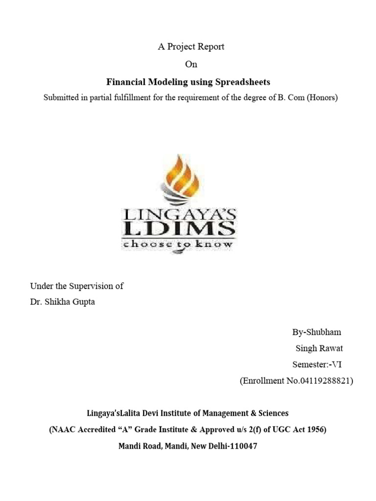 This is to certify that I have completed the Project titled “Financial Modeling using Spreadsheet” under the