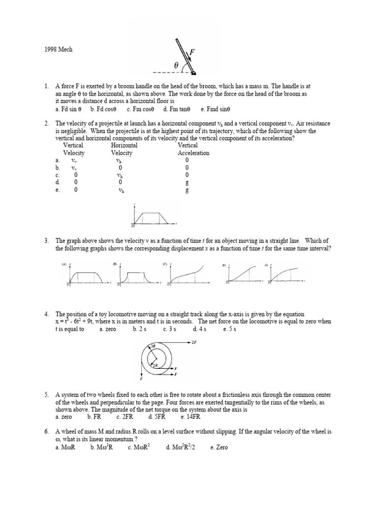 an angle to the horizontal, as shown above. The work done by the force on the head of the broom as