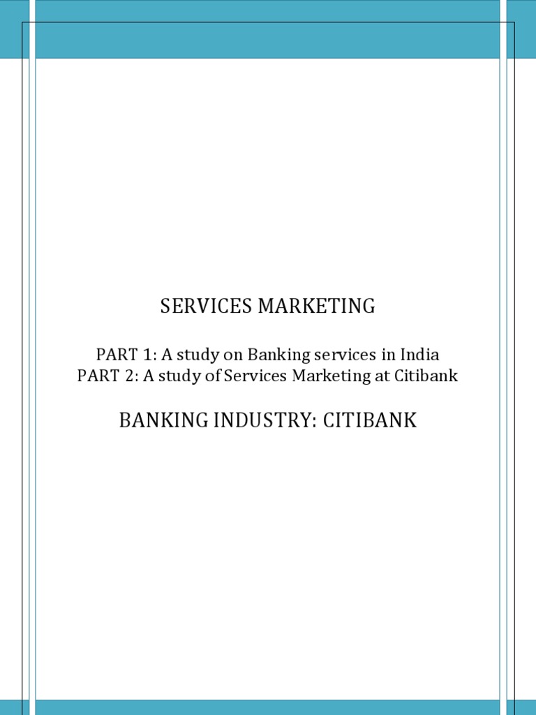 PART 1: A study on Banking services in India PART 2: A study of Services Marketing at Citibank