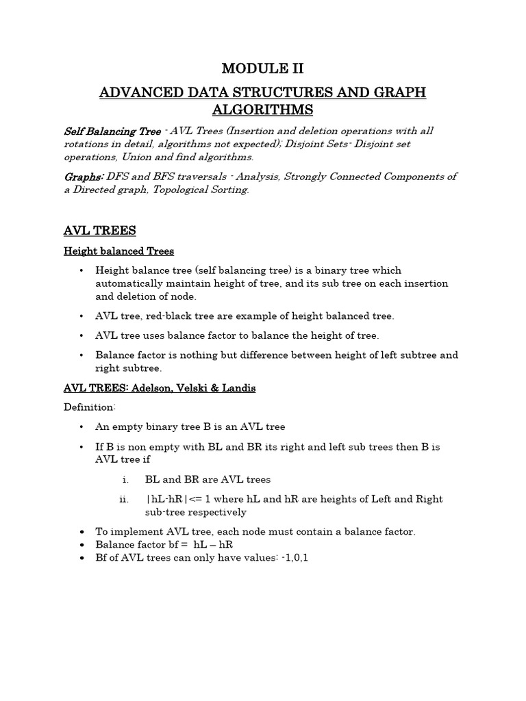 rotations in detail, algorithms not expected); Disjoint Sets- Disjoint set