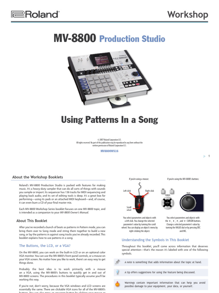 About the Workshop Booklets If you’re using a mouse: If you’re using the MV-8800’s buttons: