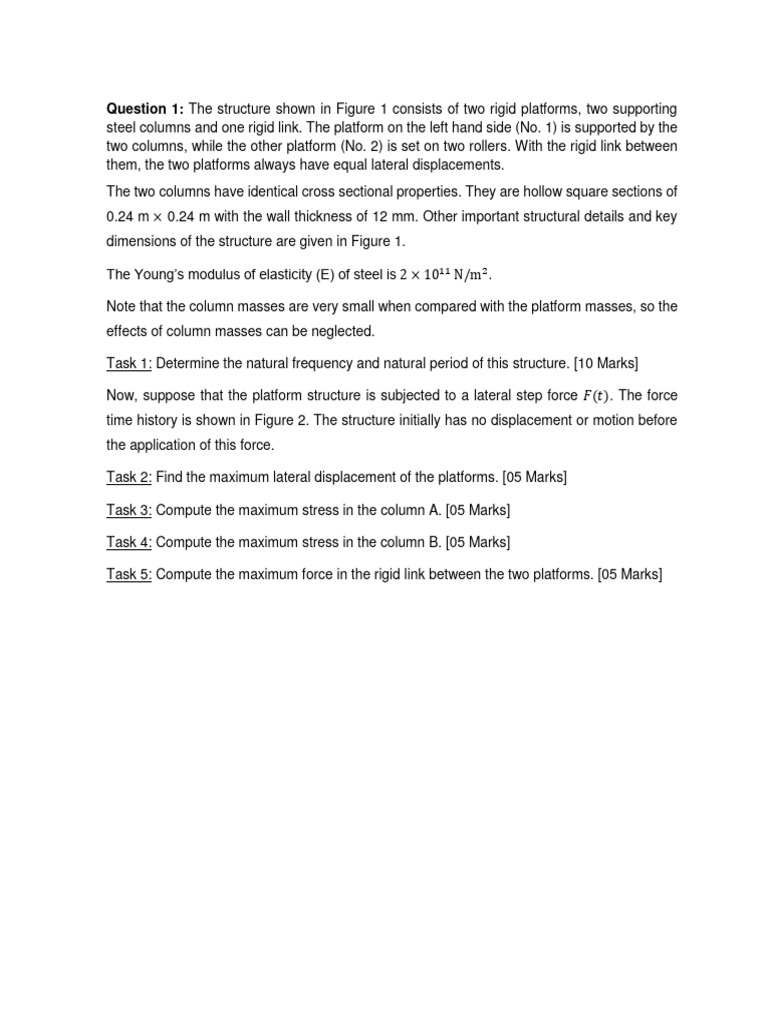 Question 1: The structure shown in Figure 1 consists of two rigid platforms, two supporting
