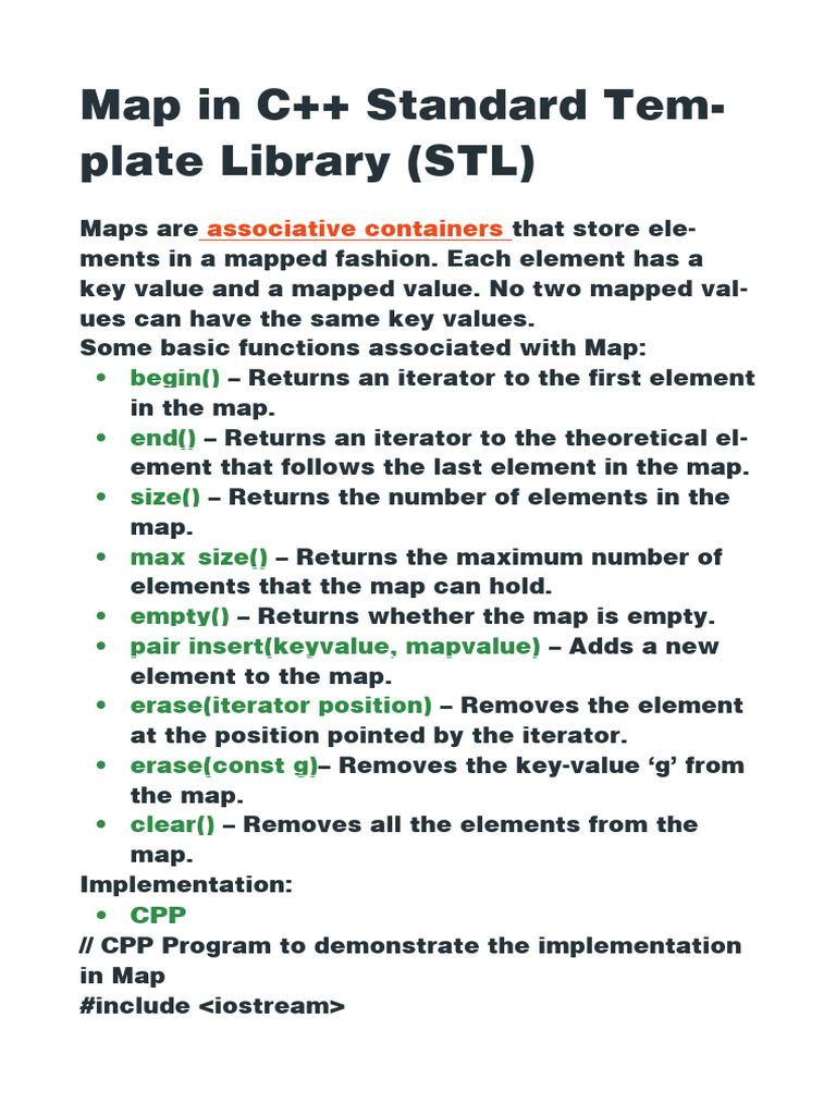 • pair insert(keyvalue, mapvalue) – Adds a new
