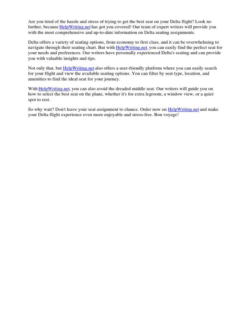 So why wait? Don't leave your seat assignment to chance. Order now on HelpWriting.net and make