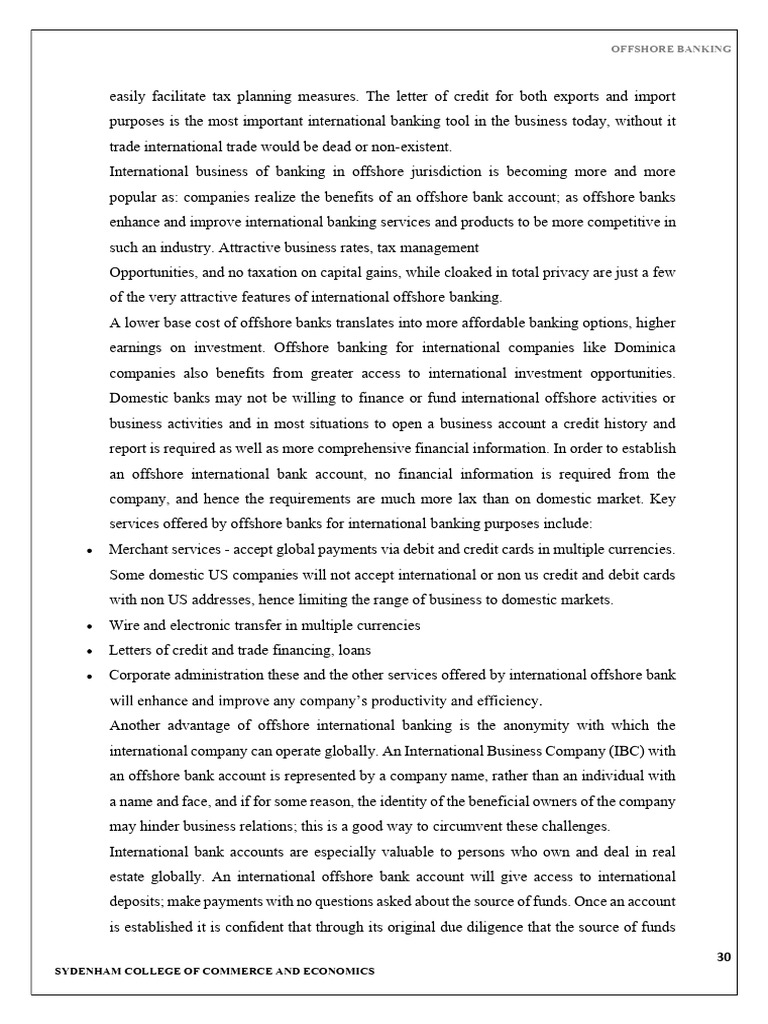 used to at home. By using an offshore bank, based in a highly regulated, transparent
