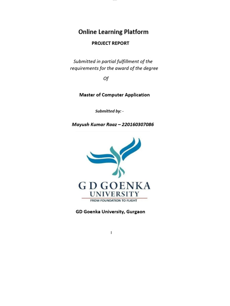 Learning Platform, in partial fulfillment of the requirements for the degree of Master’s of