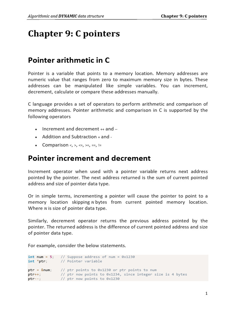 Algorithmic and DYNAMIC data structure Chapter 9: C pointers