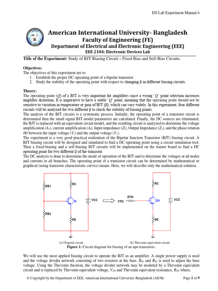 © Copyright by the Department of EEE, American International University-Bangladesh (AIUB) Page 1 of 9