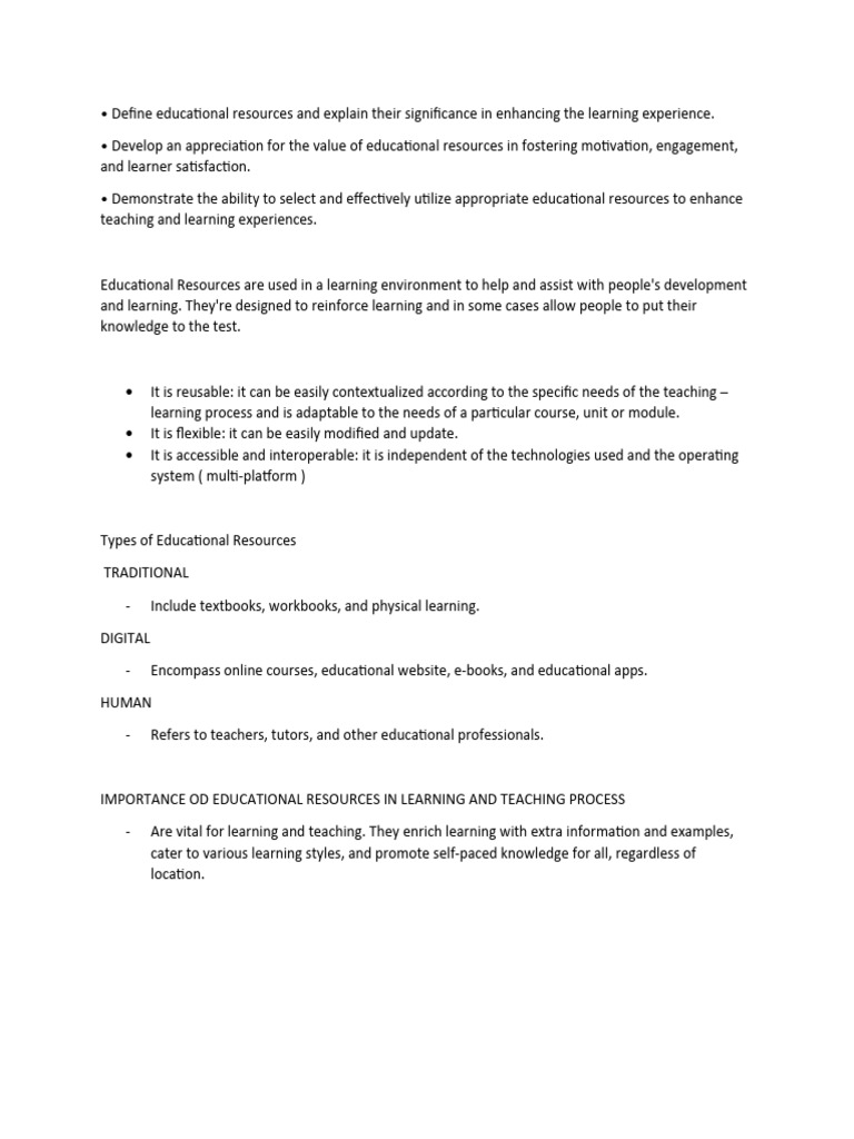 • Define educational resources and explain their significance in enhancing the learning experience.