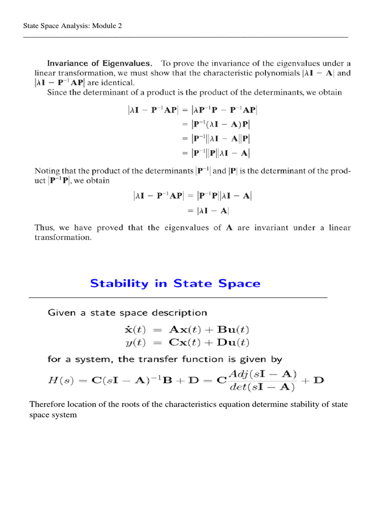 Example : Consider the following dynamical system . Determine the state transition matrix using disgonalisation