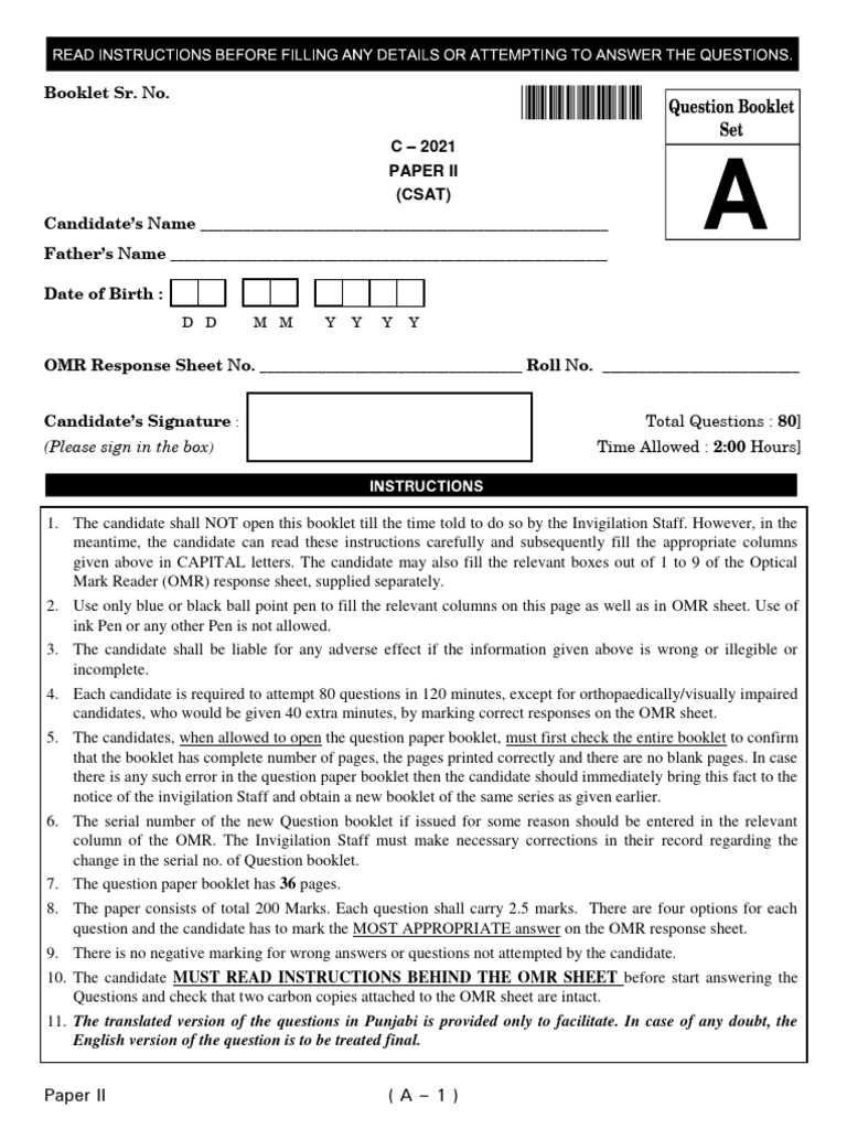 11. The translated version of the questions in Punjabi is provided only to facilitate. In case of any doubt, the