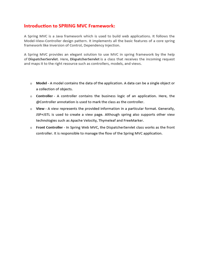 Introduction to SPRING MVC Framework: