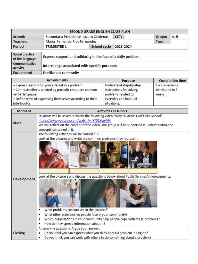 School: Secundaria Presidente Lázaro Cárdenas CCT: Grupo: A, B