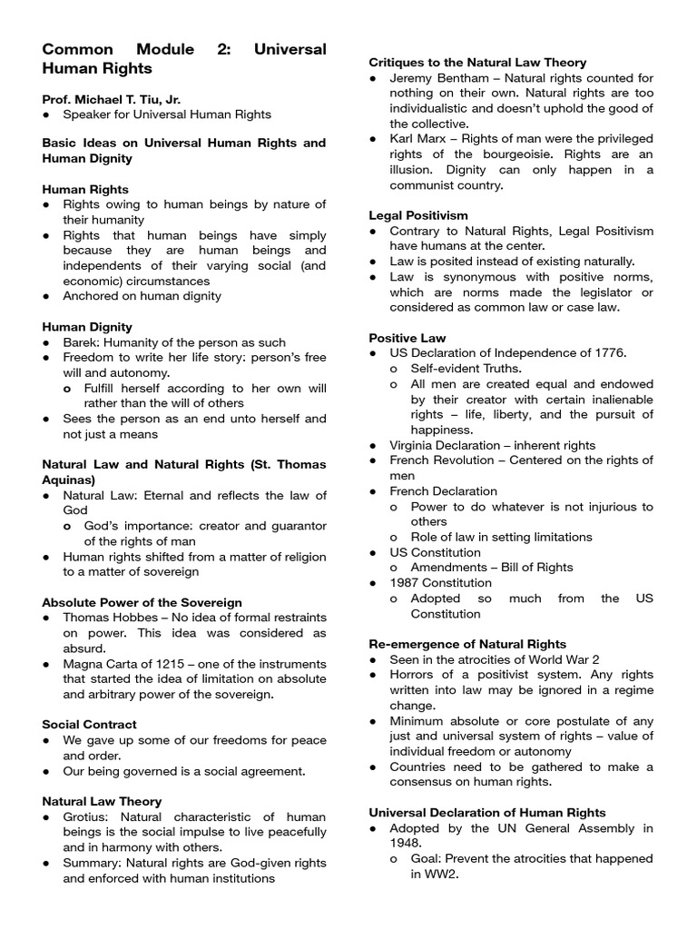 ● Summary: Natural rights are God-given rights o Goal: Prevent the atrocities that happened