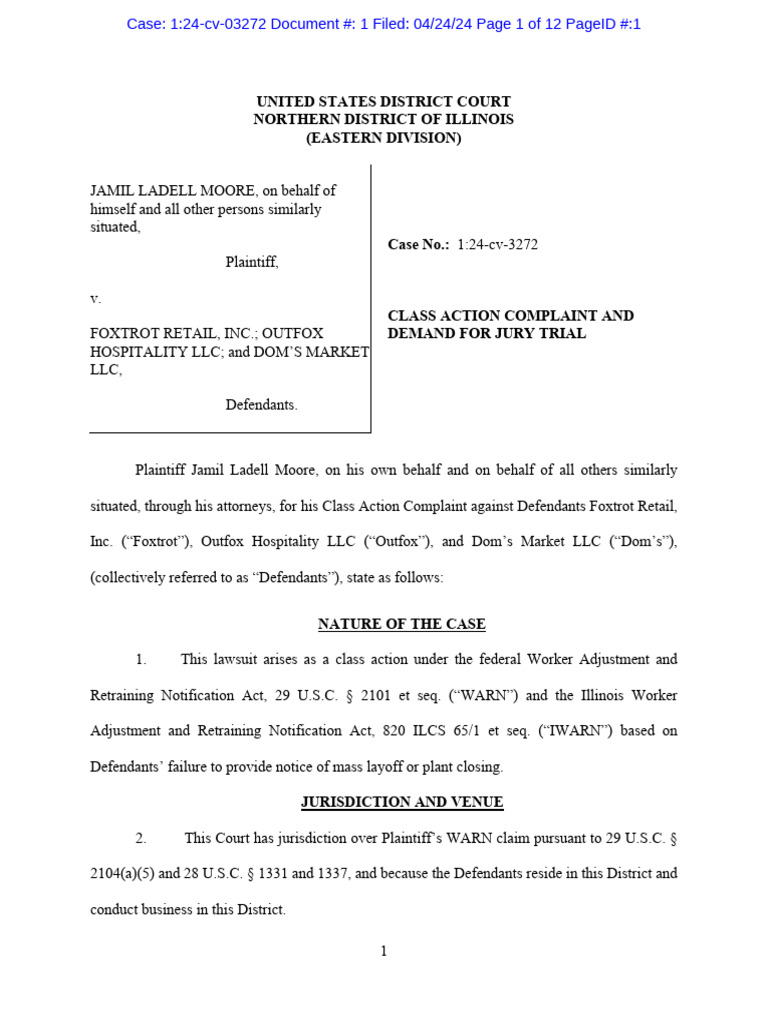 situated, through his attorneys, for his Class Action Complaint against Defendants Foxtrot Retail,