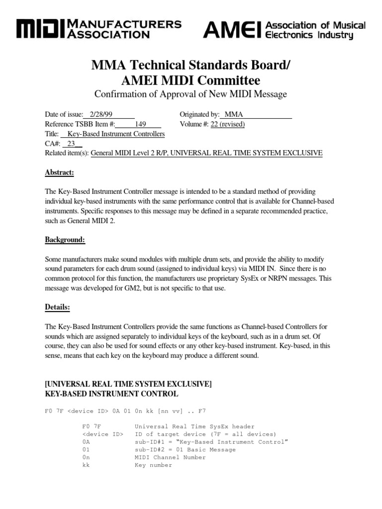 The Key-Based Instrument Controller message is intended to be a standard method of providing