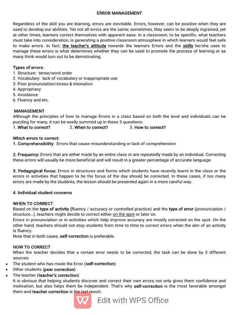 to make errors. In fact, the teacher’s attitude towards the learners Errors and the skills he/she uses to