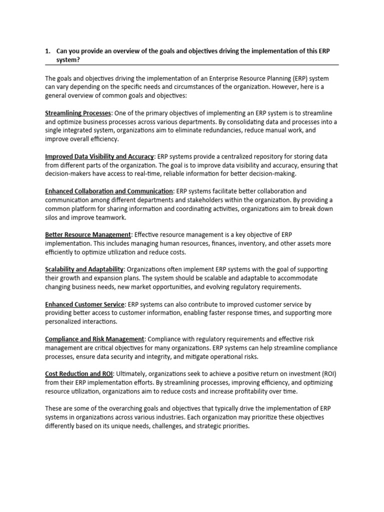 These are some of the overarching goals and objectives that typically drive the implementation of ERP