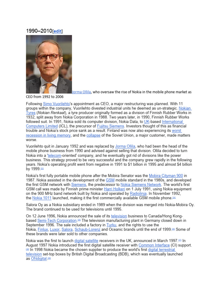 mobile phone business from 1990 and advised against selling that division. Ollila decided to turn