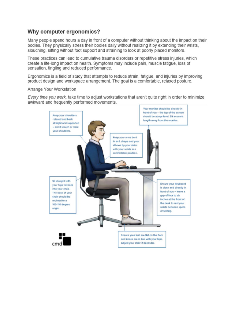 on the correct monitor placement to reduce the risk of injury and health issues.