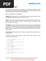 data types, such as integers, floats, booleans, and strings, all of which we'll cover in this lesson. (This is just a